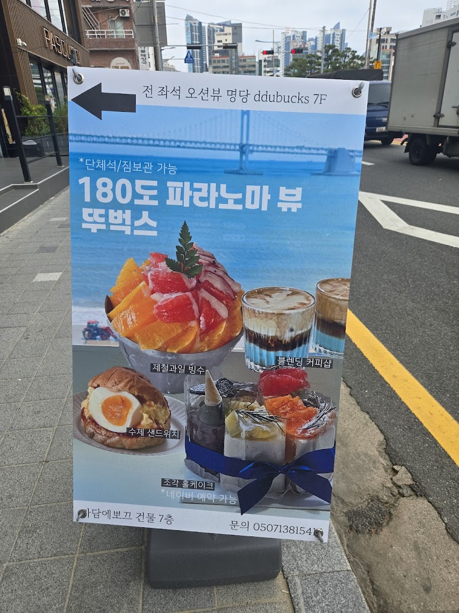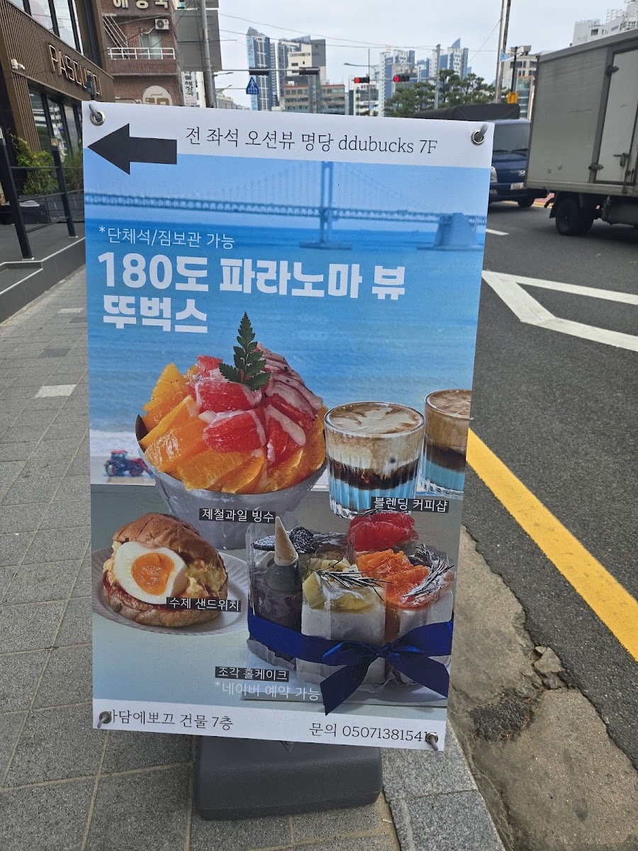 Ddubucks Gwangan offers a delightful menu that combines refreshing beverages and satisfying dishes, perfect for a relaxing time by the beach in Busan. Among the standout drinks, 레몬 자몽 레몬 에이드 stands out as a must-try, providing a zesty and invigorating blend of lemon and grapefruit flavors. Its refreshing qualities make it an excellent choice for warm days. For those seeking a comforting drink, the café’s 라떼와 하나는 생각나지않음 offers a rich, smooth coffee experience, with a unique twist that sets it apart from regular latte variations. Additionally, the menu features a variety of desserts and savory options, making it an ideal spot for both light bites and indulgent treats. Whether you're craving something sweet or savory, Ddubucks has something to offer for every taste.